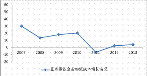 圖 3鋼鐵企業物流成本增長情況(單位:%)