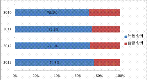 2013年對外支付的物流成本同比增長10.2%,占物流成本的比例為74.8%,同比提高3.5個百分點。通過采用專業物流可以使鋼鐵企業更好地保持競爭優勢,同時提高企業物流效率、減少資金占用。