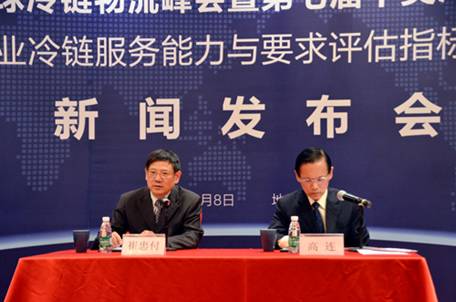 5月8日上午,2015全球冷鏈物流峰會暨第七屆中美冷鏈物流會議新聞發布會在北京舉行。中國物流與采購聯合會副會長兼秘書長崔忠付、大連市港口與口岸局局長高連、副局長史原、美國駐華使館農業貿易處專員裴志勇等出席新聞發布會并講話,發布會由中物聯冷鏈物流專業委員會秘書長秦玉鳴主持。