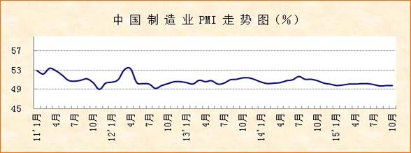 中國物流與采購聯合會、國家統計局服務業調查中心發布的2015年10月份中國制造業采購經理指數(PMI)為49.8%,同上月持平。主要分項指數有升有降,波動幅度較小。從PMI來看,當前經濟運行保持平穩走勢。