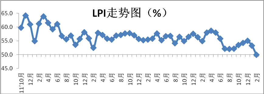 物流服務價格回升,市場短時供需不平。2月份,物流服務價格指數環比回升4個百分點,位于51.7%。反映出從業人員減少,用工成本增長,市場需求不減,作為與民生有關服務產業的物流業,在本月出現供小于求的現象,導致物流服務價格較上月回升。