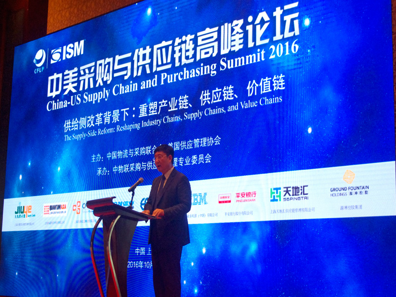 10月21日,以“供給側改革背景下:重塑產業鏈、供應鏈、價值鏈”為主題的2016中美采購與供應鏈高峰論壇在上海外高橋喜來登酒店隆重召開,中國物流與采購聯合會副會長蔡進出席論壇并發表講話。本次論壇由中國物流與采購聯合會、美國供應管理協會主辦,中物聯采購與供應鏈管理專業委員會承辦,得到了上海市商務委員會和國內采購與供應鏈領域知名企業的大力支持。相關政府機構代表、中美采購與供應鏈專家、企業家代表、業界同行精英以及媒體等300余位嘉賓共同出席了論壇。