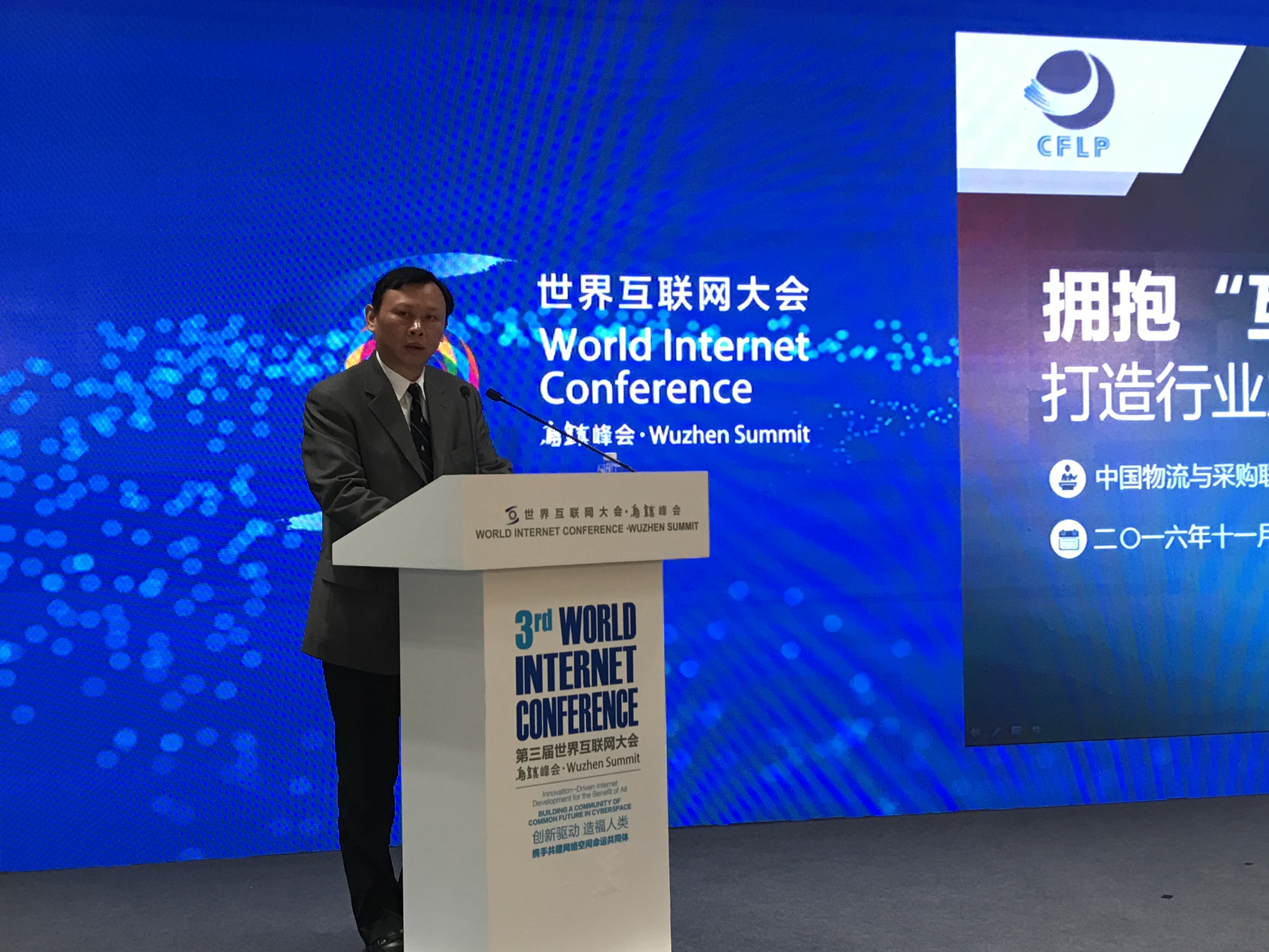 由我會主辦的“互聯(lián)網(wǎng)+物流”論壇首次在第三屆世界互聯(lián)網(wǎng)大會上召開。首先,我代表中國物流與采購聯(lián)合會,對參加本次論壇的各位代表、中外嘉賓、企業(yè)家朋友表示熱烈的歡迎!