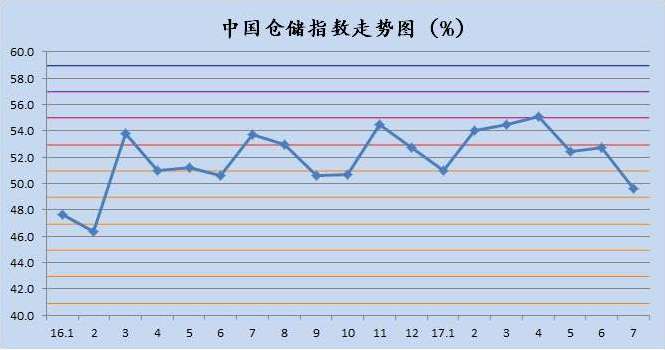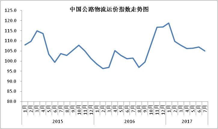 中國物流與采購聯(lián)合會發(fā)布的2017年7月份中國物流業(yè)景氣指數(shù)為53.8%較上月回落2個百分點;中國倉儲指數(shù)為49.6%,較上月回落3.1個百分點;中國公路物流運價指數(shù)為105.1點,比上月回落1.8%;中國電商物流運行指數(shù)同比指數(shù)為119.8點,比上月回落3.4點。