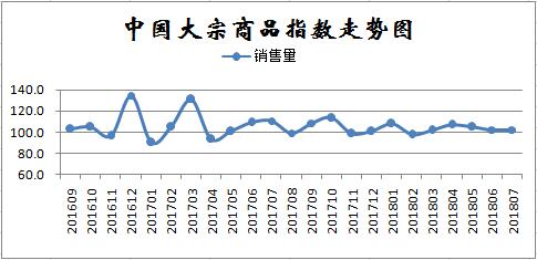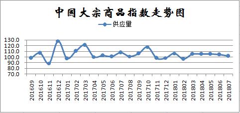 由中國物流與采購聯合會調查、發布的2018年7月份中國大宗商品指數(CBMI)為101.7%,指數為近五個月以來的最低水平,顯示市場下行壓力依然存在。各分項指數中,銷售指數、庫存指數止跌反彈,供應指數、價格指數有所回落。從本月指數的變化情況來看,雖然綜合指數繼續回落,但需求端淡季不淡,市場銷售增速加快,銷售指數高出供應指數0.8個百分點,顯示終端需求正在平穩釋放,市場整體表現超出預期。后期隨著環保政策高壓常態化,國家釋放寬松信號,市場信心明顯增強,國內大宗商品價格行情或將表現為震蕩趨漲的態勢。