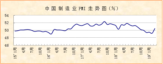 中國物流與采購聯合會、國家統計局服務業調查中心發布的2019年3月份中國制造業采購經理指數(PMI)為50.5%,較上月回升1.3個百分點,連續3個月運行在50%以下后重回擴張區間。從分項指數來看,春節后市場回歸正常軌道,市場需求增加,企業生產擴張,采購趨于活躍,原材料和產成品價格上升。中小企業生產經營活動上升,新動能繼續穩中有進發展。預計一季度經濟出現較大回落的可能性較小,經濟增速有條件保持去年四季度水平。