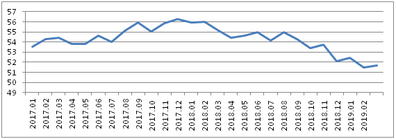 據中國物流與采購聯合會發布,2019年3月份全球制造業PMI為51.7%,較上月小幅上升0.2個百分點,較去年同期下降3.5個百分點。美國和中國制造業PMI雙雙回升帶動本月全球制造業PMI小幅回升。一季度,全球制造業PMI均值為51.9%,較2018年四季度回落1.2個百分點。