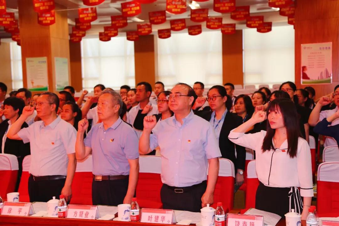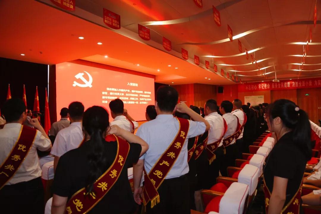 會上,全體黨員重溫入黨誓詞,在鮮紅的黨旗下,舉起右手莊嚴宣誓。中國醫藥物資協會綜合行政部部長饒春艷作為預備黨員,在余平書記及中國醫藥物資協會黨支部、神威藥業集團100多位老黨員的帶領下,宣讀入黨誓言,正式入黨。