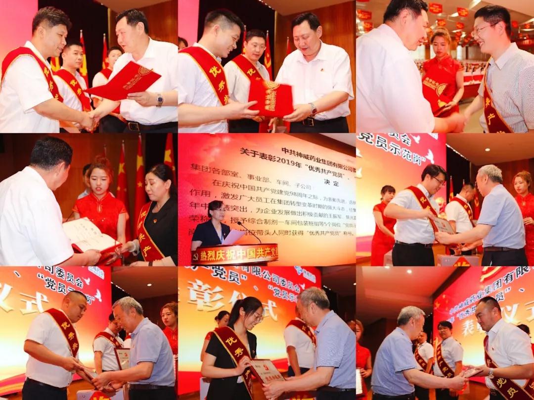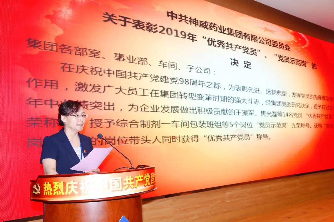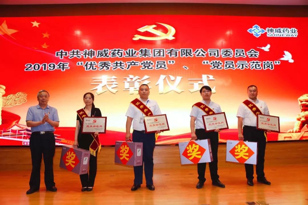 本次會議還對神威藥業集團2019年“優秀共產黨員”、“黨員示范崗”進行表彰,企業營銷系統黨支部書記劉秀輝宣讀《中共神威藥業集團有限公司委員會關于表彰2019年“優秀共產黨員”、“黨員示范崗”的決定》授予在過去一年中業績突出,為企業發展做出積極貢獻的王振軍、焦光磊等14名黨員“優秀共產黨員”光榮稱號,授予綜合制劑一車間包裝班組等5個崗位“黨員示范崗”光榮稱號。余平、方賢業為獲獎人員頒獎。