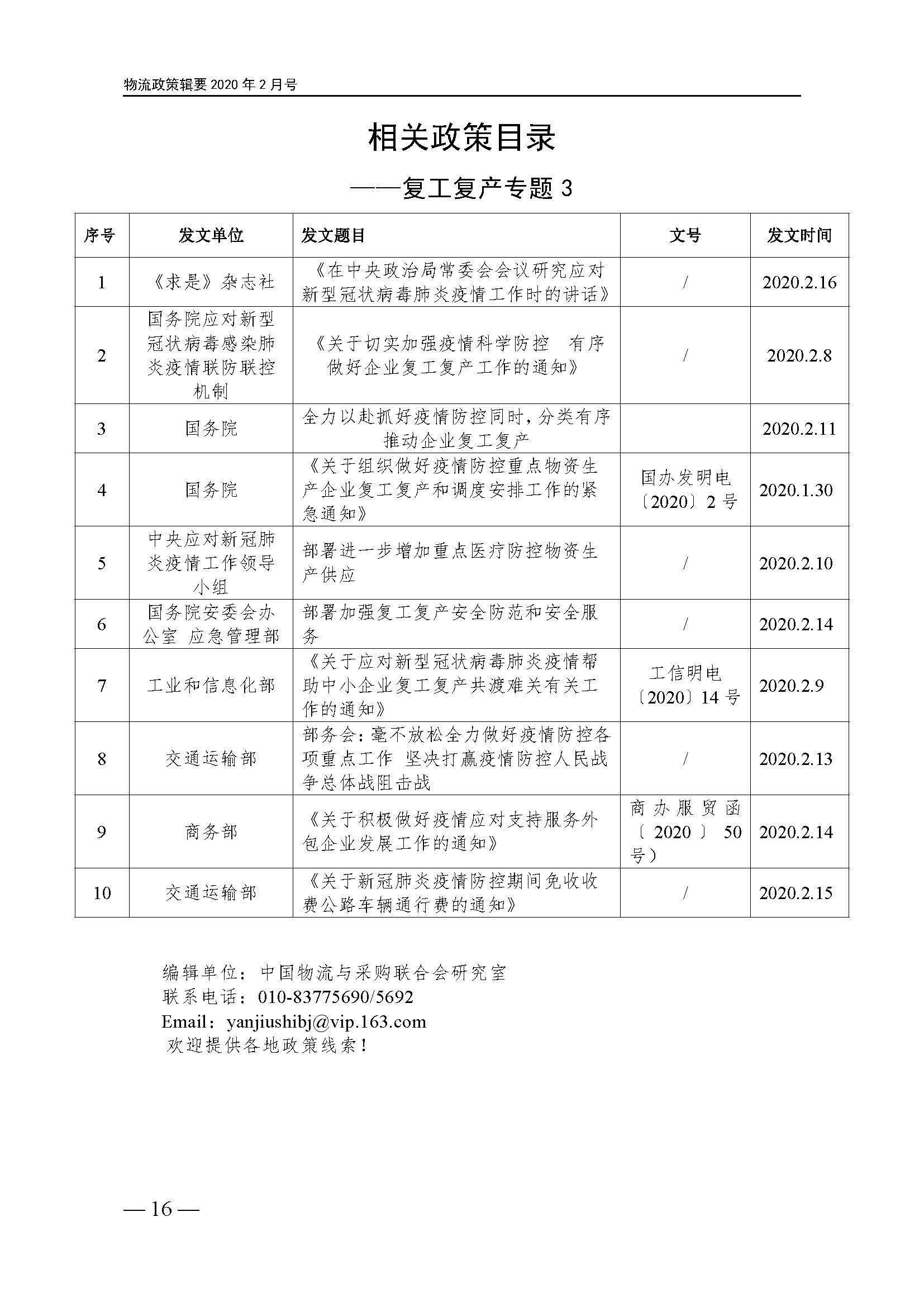 2.國務院應對新型冠狀病毒感染肺炎疫情聯(lián)防聯(lián)控機制:《關于切實加強疫情科學防控?有序做好企業(yè)復工復產工作的通知》(2020.2.8)