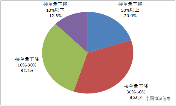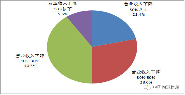 從調查情況來看,由于延期復工、業務中斷,疫情對倉儲企業的經營有明顯影響。對于一季度營業收入,與去年同期相比,約一半的企業預計將超過30%。具體來看,21.4%的企業預計下降50%以上,28.6%的企業預計下降30%-50%,40.5%的企業預計下降10%-30%,只有9.5%的企業預計降幅在10%以內。