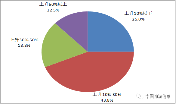 預計庫存量上升的企業中,25.0%的企業預計升幅在10%以內,43.8%的企業預計升幅在10%-30%之間,18.8%的企業預計升幅在30%-50%之間,12.5%的企業預計升幅在50%以上。