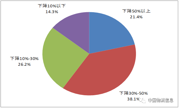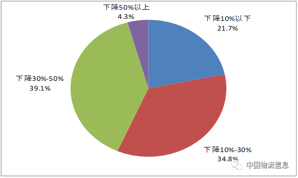 預計庫存量下降的企業中,21.7%的企業預計降幅在10%以內,34.8%的企業預計降幅在10%-30%之間,39.1%的企業預計降幅在30%-50%之間,4.3%的企業預計降幅在50%以上。