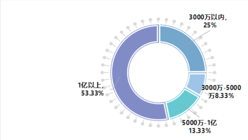 調研結果顯示,營業額1億以上的企業最多,占比為53.33%;營業額5000萬-1億的企業占比為13.33%,具體結果見下圖。