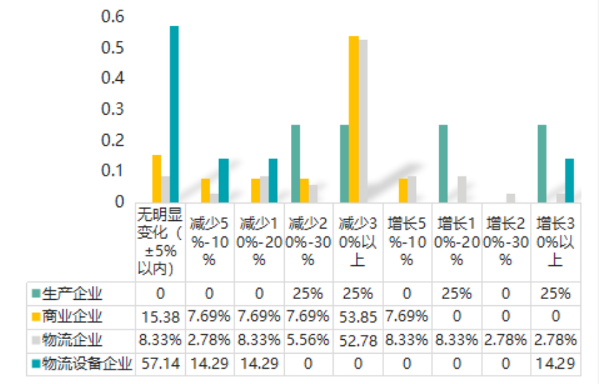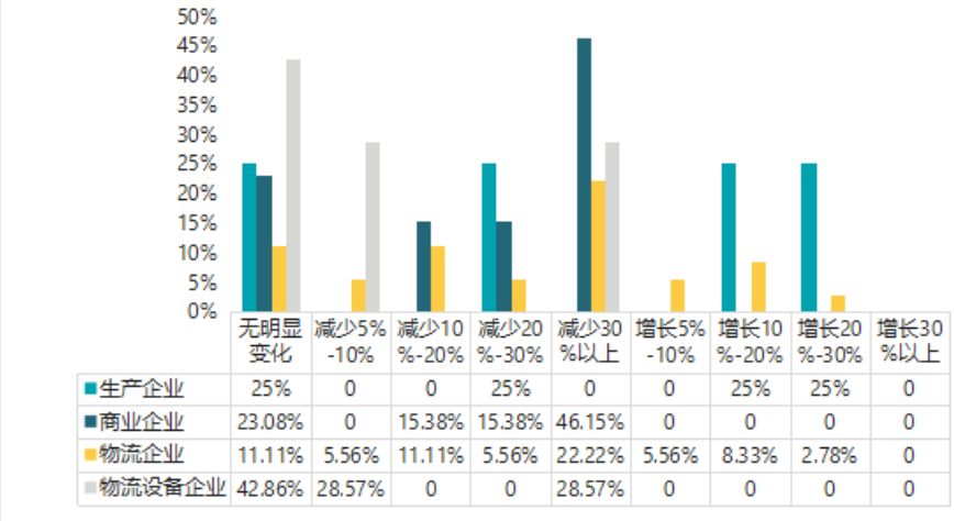 按照企業類型統計,不管是生產企業、商業企業還是物流企業,城市配送業務量下降比較明顯,增長較少。