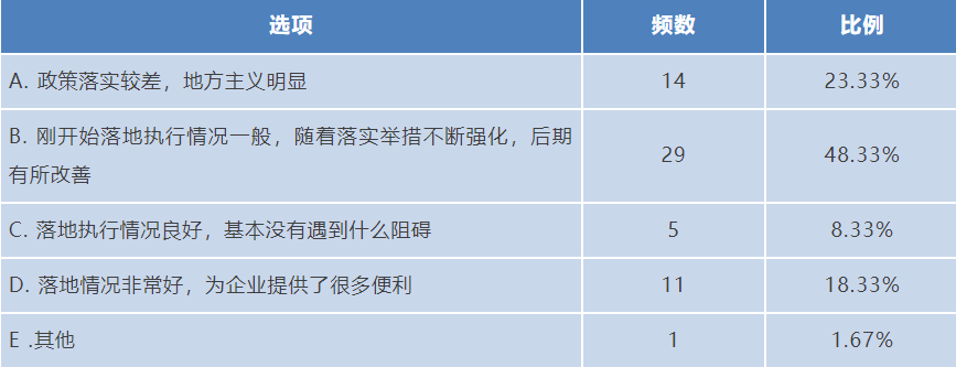 調研結果顯示,針對抗疫期間交通運輸部出臺的一系列緊急政策的落實情況,將近一半的企業所在地剛開始執行情況一般,隨著落實舉措不斷加強,后期有所改善。25%的企業所在地政策落實較好。值得注意的是,23%的企業所在地地方主義明顯,導致政策落實效果較差。這也是醫藥物流行業很多政策難以推行的原因之一。