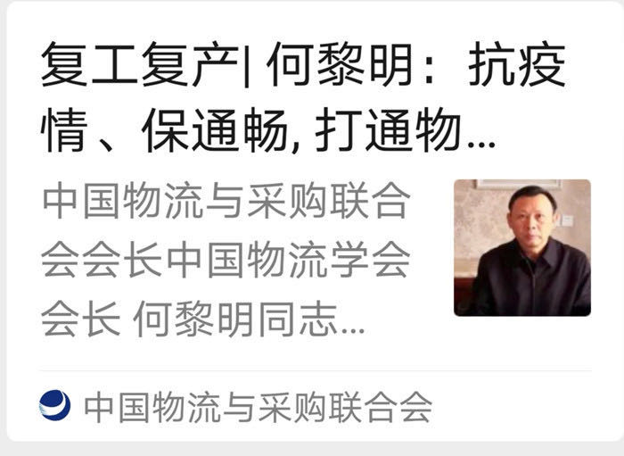 中國物流與采購聯(lián)合會對湖北物流行業(yè)的抗疫保供、復工復產(chǎn)行動,給予充分肯定。