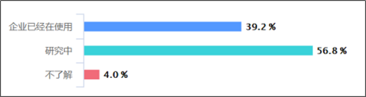 隨著技術(shù)的更新和新材料的不斷更迭,硬件的成本逐步降低,物聯(lián)網(wǎng)的應(yīng)用已經(jīng)深入到眾多行業(yè)。海量數(shù)據(jù)的沉淀,只有通過數(shù)據(jù)的不斷挖掘才能讓數(shù)據(jù)產(chǎn)生價值,因此大數(shù)據(jù)和物聯(lián)網(wǎng)的應(yīng)用受到眾多企業(yè)關(guān)注并不是偶然。同時,云計算、人工智能、區(qū)塊鏈的加入,使得企業(yè)可以在云上構(gòu)建更多地應(yīng)用,盡可能使企業(yè)的數(shù)據(jù)價值得到釋放。應(yīng)用技術(shù)整合,企業(yè)可以獲得更多地發(fā)展空間。調(diào)查顯示,已經(jīng)有39.2%的核心企業(yè)應(yīng)用大數(shù)據(jù)、人工智能等技術(shù)來輔助企業(yè)做資源整合和決策優(yōu)化等(如圖4)。