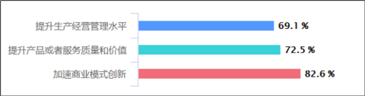 提升管理水平是企業(yè)數(shù)字化轉(zhuǎn)型直接體現(xiàn),數(shù)字化帶來了企業(yè)整體的優(yōu)化整合,管理水平的提升導(dǎo)致工作效率的提升,數(shù)字化技術(shù)能協(xié)同企業(yè)高效運營實現(xiàn)降本增效。同時,研究發(fā)現(xiàn),大多數(shù)企業(yè)認為企業(yè)數(shù)字化轉(zhuǎn)型會加速創(chuàng)新與企業(yè)需求相適應(yīng)的商業(yè)模式,實現(xiàn)企業(yè)可持續(xù)發(fā)展。