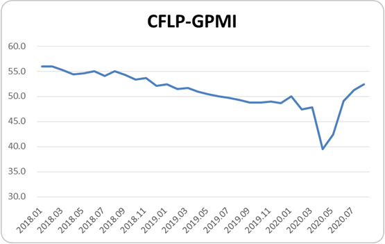 據中國物流與采購聯合會發布,2020年8月份全球制造業PMI為52.5%,較上月上升1.2個百分點,連續2個月保持在50%以上。亞洲、非洲、美洲和歐洲各區域制造業PMI均呈現連續上升走勢,且均回升至50%以上,表明全球制造業呈現持續恢復跡象,恢復力度較上月有所加大。