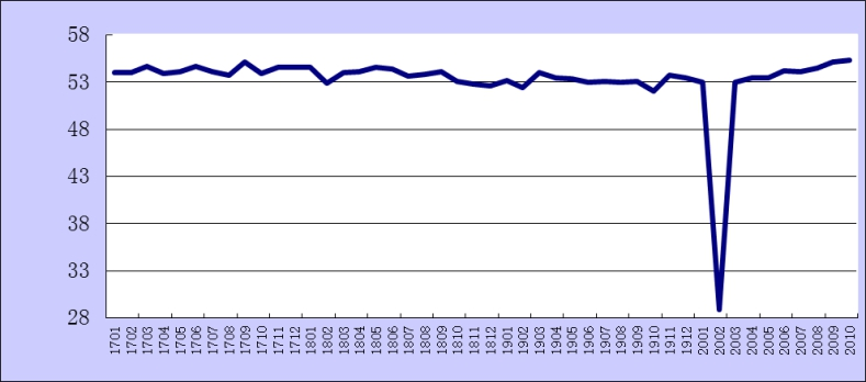 中國物流與采購聯(lián)合會、國家統(tǒng)計(jì)局服務(wù)業(yè)調(diào)查中心采購經(jīng)理調(diào)查發(fā)布的2020年10月份綜合PMI產(chǎn)出指數(shù)為55.3%,較上月上升0.2個百分點(diǎn)。該指數(shù)是PMI指標(biāo)體系中反映當(dāng)期全行業(yè)(制造業(yè)和非制造業(yè))產(chǎn)出變化情況的綜合指數(shù),由制造業(yè)生產(chǎn)指數(shù)與非制造業(yè)商務(wù)活動指數(shù)加權(quán)求和而成,權(quán)數(shù)分別為制造業(yè)和非制造業(yè)占GDP的比重。