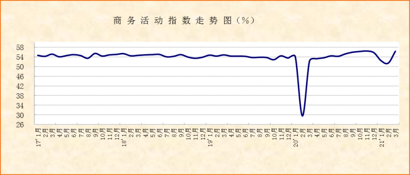 中國物流與采購聯合會、國家統計局服務業調查中心發布的2021年3月份中國非制造業商務活動指數為56.3%,較上月上升4.9個百分點,新訂單指數為55.9%,較上月上升7個百分點。綜合指數變化,市場供需增速較上月明顯加快,非制造業恢復性增長態勢進一步鞏固。