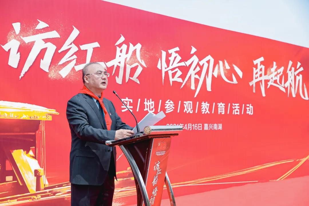 方賢業代表中國醫藥物資協會致辭。他表示為慶祝中國共產黨成立100周年,中國醫藥物資協會決定開展系列慶?;顒樱裉斓郊闻d南湖開展“訪紅船、悟初心、再起航”實地參觀教育活動,是協會極為重視極為精心組織的系列活動之一。