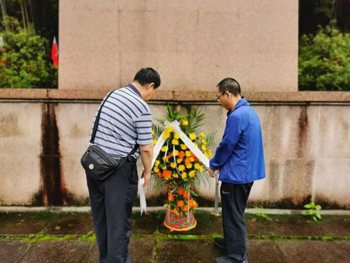 余平同志和胡大劍同志代表中物聯冒雨敬獻花籃