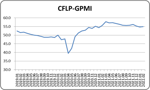 據中國物流與采購聯合會發布,2022年2月份全球制造業PMI為54.9%,較上月小幅上升0.2個百分點,連續2個月穩定在54%以上。分區域看,美洲和非洲制造業PMI較上月有所上升,亞洲和歐洲制造業PMI較上月有所下降。