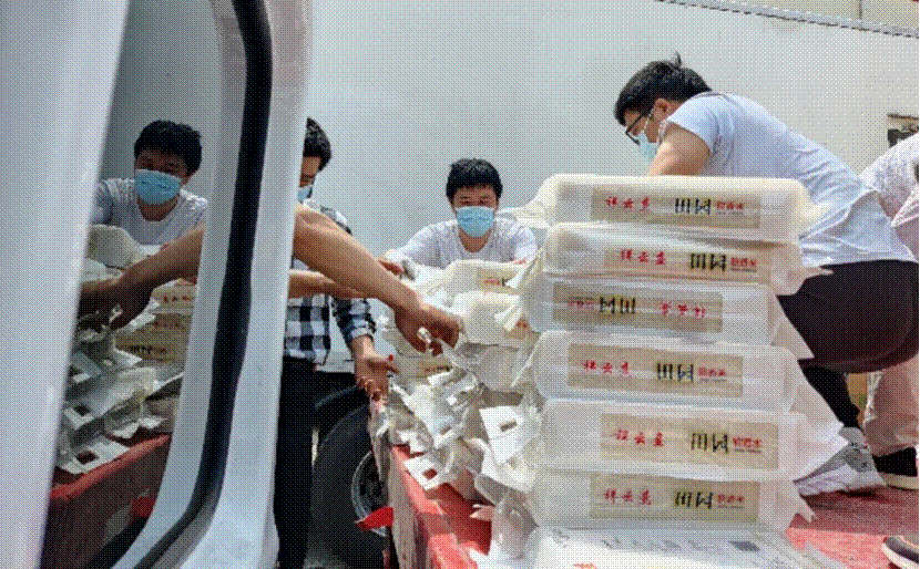 此次需要卸貨的是兩輛裝載米、面、雞蛋、蔬菜等物資的大型貨車。志愿者們分工協作,將一箱箱物資從貨車卸下,整箱貨物拆分成小單元,分類、分區碼放。當天氣溫一度突破30℃,志愿者們帶著口罩、手套等防護用品,在悶熱的環境下持續工作7個小時,即便沉重的貨物磨破皮膚,烈日曬紅臉頰,大家依然干勁滿滿。志愿們紛紛表示:“想到可以為防疫出一份力,心里都是開心的?!?/span>