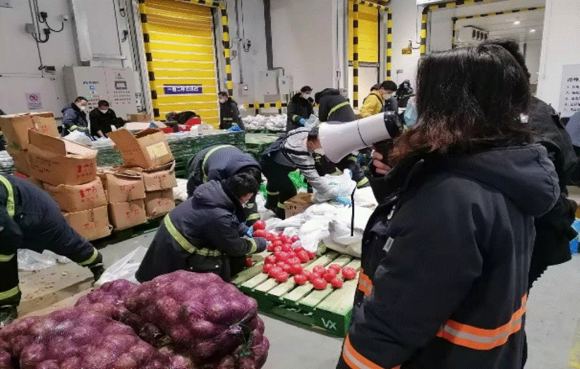 上海新浜園區志愿者助力政府保供物資卸貨