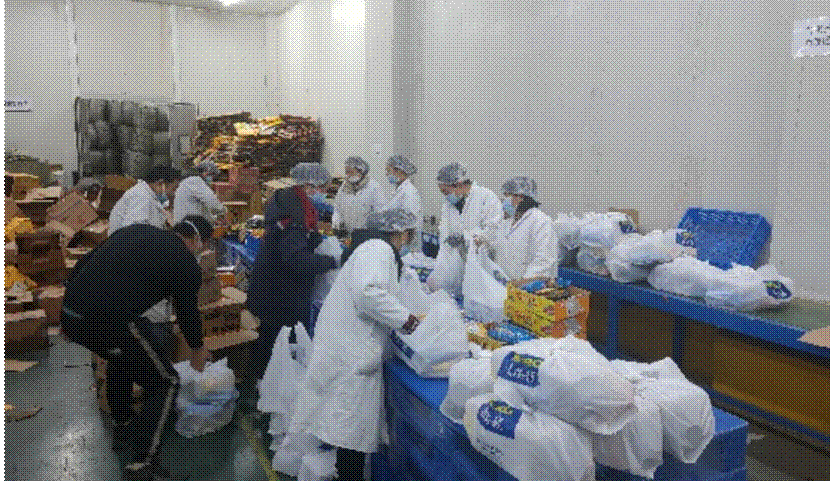 南橋園區QA合伙人張波介紹,13號當晚麥德龍物資入庫園區,需要人手對物資做分揀、包裝,處理成2萬份物資包,每份包含牛奶、泡面、餅干等單品。