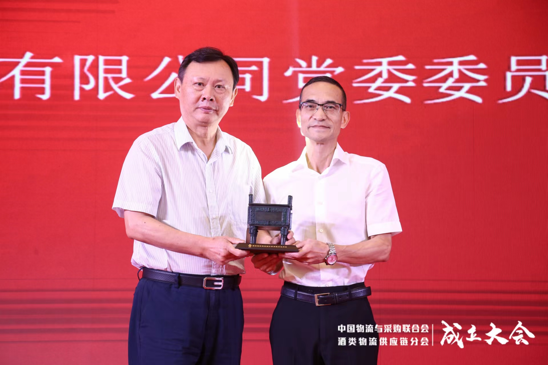 隨后,何黎明為瀘州老窖股份有限公司黨委委員、副總經理、首席質量官、分會輪值會長何誠頒發當值會長信物,并對瀘州老窖在酒類物流供應鏈領域做出的貢獻給予高度評價。