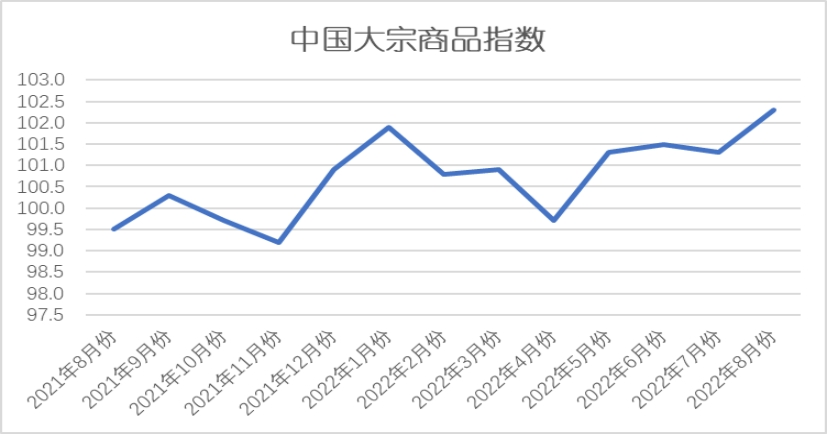 由中國物流與采購聯合會調查、發布的2022年8月份中國大宗商品指數(CBMI)為102.3%,較上月回升1.0個百分點。各分項指數中,供應指數和庫存指數均出現回落,銷售指數則明顯回升。從指數的變化情況來看,本月CBMI回升至2021年5月份以來的最高水平,顯示供應壓力有所緩解,商品需求開始回暖,之前供需錯配的矛盾正在緩和,國內大宗商品市場開始出現積極的變化。進入9月份,隨著天氣好轉,傳統施工旺季的來臨,全國性的需求有望進一步好轉,加之在國常會釋放利好政策的背景下,預計市場信心有望得到恢復,我們認為國內大宗商品市場穩中向好的格局基本確立,商品價格有望震蕩走強,但過程將會較為曲折。
