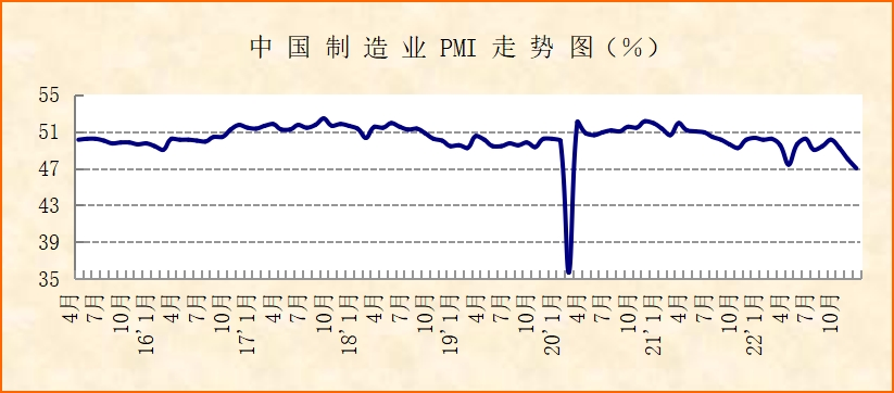中國物流與采購聯(lián)合會、國家統(tǒng)計局服務業(yè)調查中心發(fā)布的2022年12月份中國制造業(yè)采購經(jīng)理指數(shù)(PMI)為47%,較上月下降1個百分點,連續(xù)3個月下降,為2022年以來的最低點。分項指數(shù)變化顯示,新冠病毒感染疫情對經(jīng)濟的影響在短期內有所擴大,制造業(yè)企業(yè)生產(chǎn)活動放緩,市場需求繼續(xù)收縮,市場價格有所回升。結合制造業(yè)PMI走勢來看,當前經(jīng)濟探底運行。展望2023年,我國經(jīng)濟具備較好的趨穩(wěn)回升基礎。