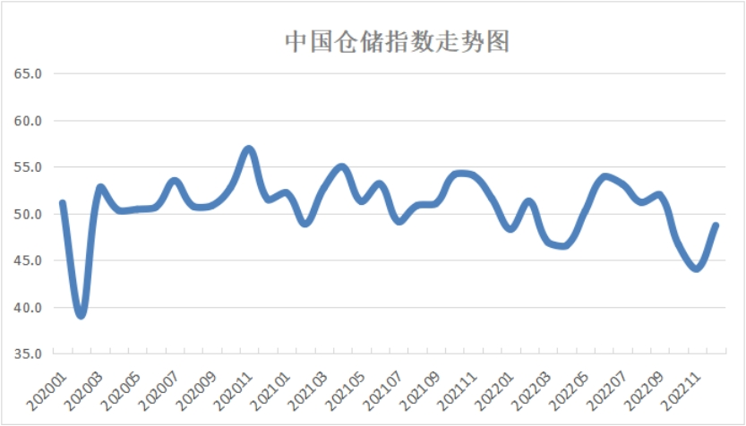 中國物流與采購聯合會和中儲發展股份有限公司聯合調查的中國倉儲指數,2022年12月份為48.7%,受疫情影響,指數仍位于榮枯線以下,但較上月回升4.6個百分點,表明隨著疫情防控政策調整,倉儲行業運行有所恢復。新訂單、業務量、設施利用率、收費價格、業務利潤等主要分項指數均有較大幅度回升,特別是新訂單和業務利潤指數,回升幅度分別達到10.1和11.0個百分點。具體來看,本月指數有以下幾個特點: