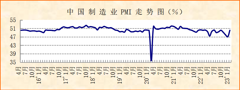 中國物流與采購聯(lián)合會、國家統(tǒng)計局服務(wù)業(yè)調(diào)查中心發(fā)布的2023年1月份中國制造業(yè)采購經(jīng)理指數(shù)(PMI)為50.1%,較上月上升3.1個百分點,在連續(xù)3個月運行在50%以下后重回擴張區(qū)間,顯示經(jīng)濟穩(wěn)步回升,新年實現(xiàn)較好開局。分項指數(shù)變化顯示,經(jīng)濟恢復(fù)基礎(chǔ)強化,經(jīng)濟恢復(fù)聯(lián)動性較好,經(jīng)濟活力有所提升,持續(xù)恢復(fù)前景可期。