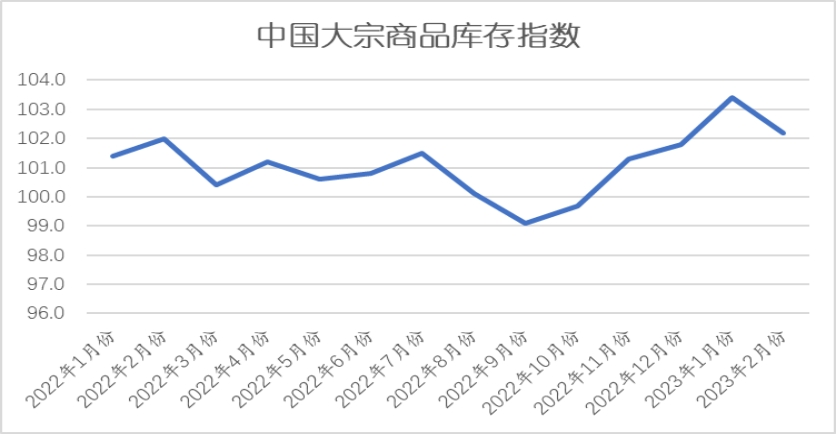 由中國物流與采購聯合會調查、發布的2023年2月份中國大宗商品指數(CBMI)為102.8%,較上月上升2.4個百分點,為近五個月以來的最高點。各分項指數中,供應指數和銷售指數均止跌回升,庫存指數小幅回落。本月CBMI顯示,指數止跌回升,顯示國內大宗商品市場運行情況較上月有所好轉,市場供需狀況明顯改善,前期受天氣、假期等因素影響造成的短期波動基本平復。但值得注意的是銷售指數的回升力度略低于供應指數,市場供需仍存在一定的失衡狀態。縱觀后市,我們認為隨著消費旺季的來臨,國內大宗商品市場基本度過了之前的低迷期,后期在經濟回暖、基建發力等利好推動下,國內大宗商品市場將迎來穩中向好的格局,商品價格存在一定的上行空間,但隨著價格上行,企業生產利潤持續恢復,將會給供應端帶來較大的壓力,這也將會抑制商品價格的上行空間。