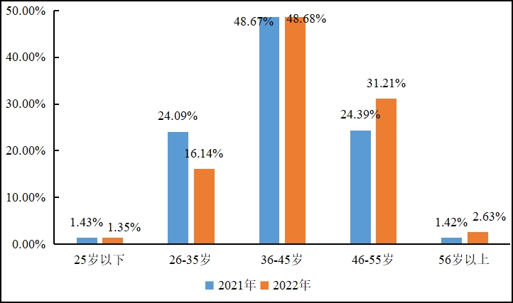 調查顯示,貨車“司機大哥”較為普遍。本次調查數據顯示,貨車司機年齡集中在36-45歲之間,占被調查貨車司機的48.68%,占比與上年持平;46歲以上司機占比為33.84%,占比增加較多。而35歲以下司機占比有所減少。除樣本選取差異外,總體反映貨車司機從業群體“大齡化”問題逐步加深。