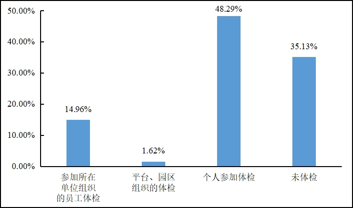 據調查數據顯示,35.13%的貨車司機未參加過體檢。48.29%的貨車司機自費進行體檢,僅有16.58%的貨車司機參加所在單位或是平臺、園區組織的體檢。