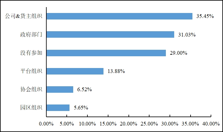 據調查數據顯示,71%的貨車司機參加過各類單位組織的培訓活動。其中35.45%的貨車司機參加所在公司&貨主組織的培訓活動;31.03%的貨車司機參加政府部門組織的培訓活動;13.88%的貨車司機參加了平臺組織的培訓活動;5%左右的貨車司機參與了協會和所在園區組織的培訓活動。