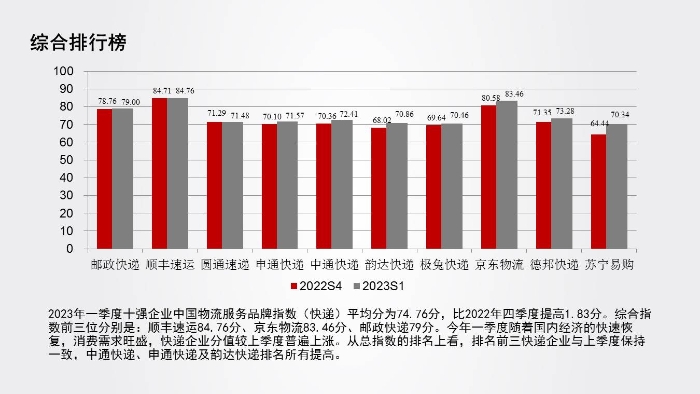 中國物流服務品牌指數(shù)(快遞物流)報告2023年一季度