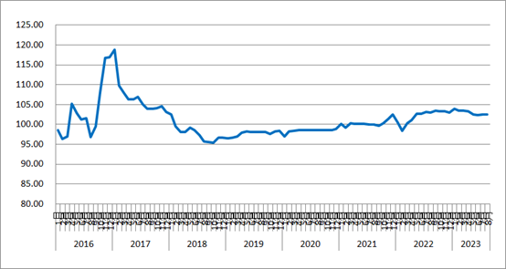圖1 2016年以來各月中國公路物流運價指數(shù)