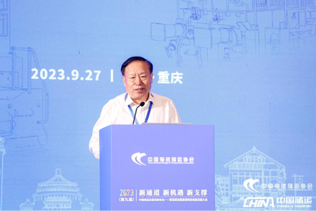2023年9月27日,2023(第九屆)中國儲運發展高峰論壇暨首屆全國通道物流創新發展大會在重慶召開,中國物流與采購聯合會副會長賀登才出席并致辭。相關政府、企業家以及行業專家、媒體記者近300人參加論壇。論壇在中國物流集團有限公司指導下,由中國物資儲運協會主辦,中儲發展股份有限公司、中國物流股份有限公司、中國包裝有限責任公司、普洛斯投資(上海)有限公司、瀘州老窖股份有限公司、重慶市物流與供應鏈協會等單位協辦。