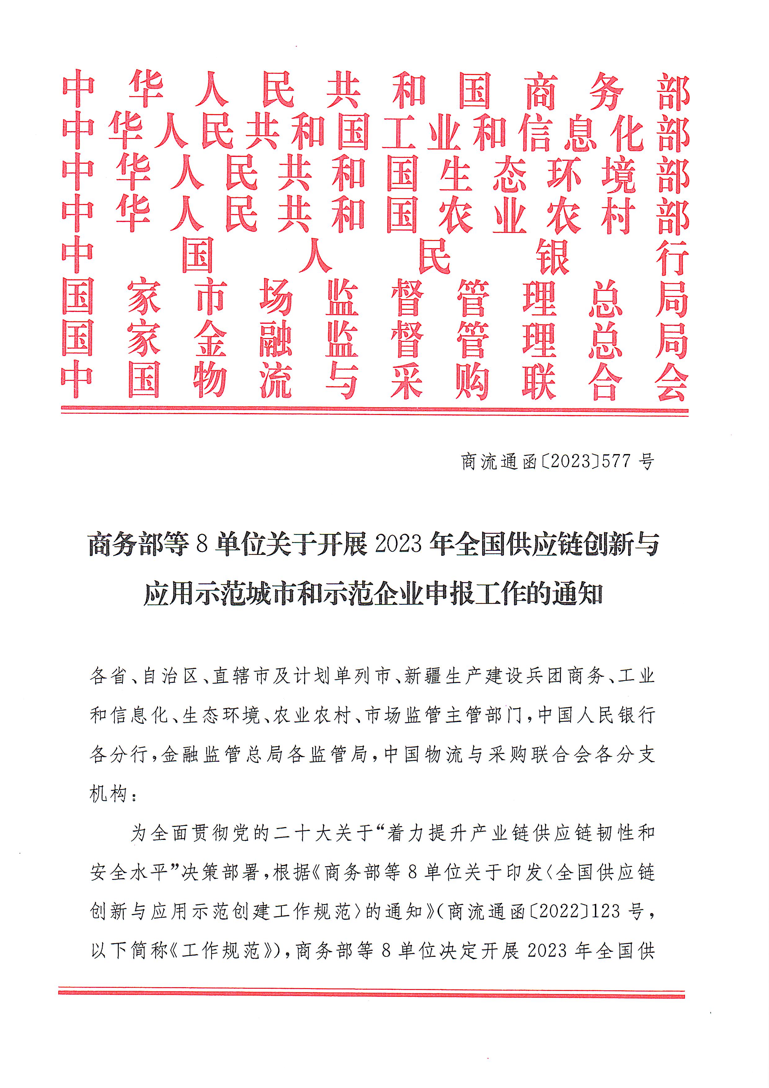 商務部等8單位關于開展2023年全國供應鏈創新與應用示范城市和示范企業申報工作的通知