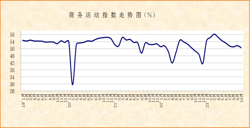 中國物流與采購聯(lián)合會、國家統(tǒng)計(jì)局服務(wù)業(yè)調(diào)查中心發(fā)布的2023年10月份中國非制造業(yè)商務(wù)活動指數(shù)為50.6%,較上月下降1.1個百分點(diǎn);新訂單指數(shù)為46.7%,較上月下降1.1個百分點(diǎn)。批發(fā)業(yè)和金融業(yè)增速回落導(dǎo)致非制造業(yè)增速放緩,節(jié)日拉動效應(yīng)回歸常態(tài)化,基建投資活動穩(wěn)定發(fā)力,企業(yè)預(yù)期相對穩(wěn)定,市場需求仍需繼續(xù)提升。
