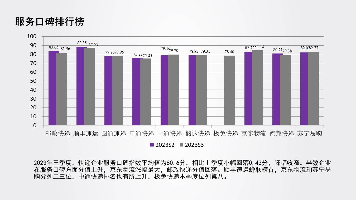 中國物流服務品牌指數(快遞物流)報告2023年三季度