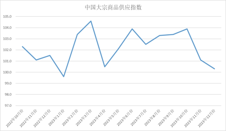 由中國物流與采購聯(lián)合會(huì)調(diào)查、發(fā)布的2023年12月份中國大宗商品指數(shù)(CBMI)為100.7%,較上月回落0.6個(gè)百分點(diǎn),指數(shù)連續(xù)三個(gè)月出現(xiàn)回落。分項(xiàng)指數(shù)顯示,銷售量、供應(yīng)量均呈上升走勢,供應(yīng)量升幅有所收窄,庫存量呈下降走勢;從市場來看,對一些大宗商品的冬儲(chǔ)需求拉動(dòng)了銷售指數(shù)的上漲,但反彈動(dòng)力仍顯不足,后續(xù)雖仍有補(bǔ)庫空間,但幅度不及往年正常年份。從供應(yīng)端來看,由于新冠疫情的反復(fù)、全球產(chǎn)業(yè)鏈的中斷和極端天氣的頻發(fā),大宗商品的供應(yīng)受到影響,導(dǎo)致能源市場供應(yīng)偏緊及工業(yè)品供過于求。綜合來看,當(dāng)前國內(nèi)大宗商品市場供應(yīng)寬松,市場情緒謹(jǐn)慎。后期來看,進(jìn)入1月份,隨著前期宏觀利好消息被市場逐步消化,疊加多地天氣將處于一年中最冷的時(shí)候,市場需求將繼續(xù)下降,加之春節(jié)臨近,終端企業(yè)需求將有所放緩,貿(mào)易商也將逐步季節(jié)性離市,整體交易活躍度下降。同時(shí)由于資金壓力趨于加大,供方為了回籠資金,會(huì)有意加快出貨速度,大宗商品價(jià)格走勢趨于走低。