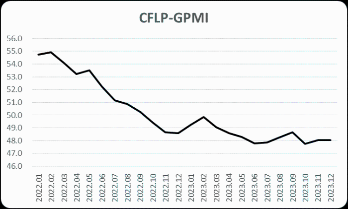 2023年12月份,美洲制造業PMI為47.6%,較上月上升0.4個百分點,美洲制造業降勢較上月有所收窄,但仍連續14個月低于50%,美洲制造業維持弱勢運行趨勢未改。主要國家數據顯示,墨西哥、巴西制造業PMI較上月有不同程度下降;哥倫比亞和美國制造業PMI較上月有不同程度上升。
