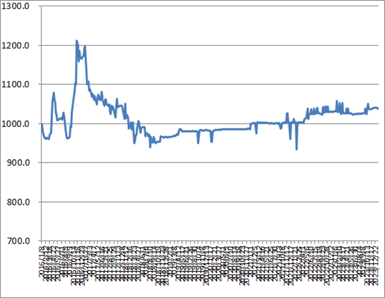 本周(2024年1月15日-1月19日),由中國物流與采購聯合會和林安物流集團聯合調查的中國公路物流運價指數為1038.95點,與上周基本持平。